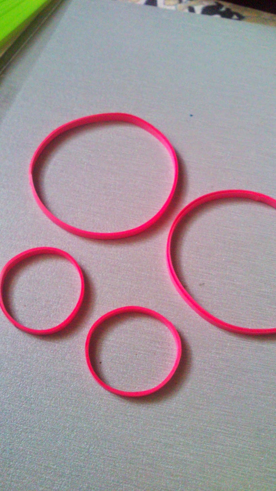 # First take two strips of pink quilling paper and glue them together. Then using the larger tube make the outer ring of the earring as shown below.